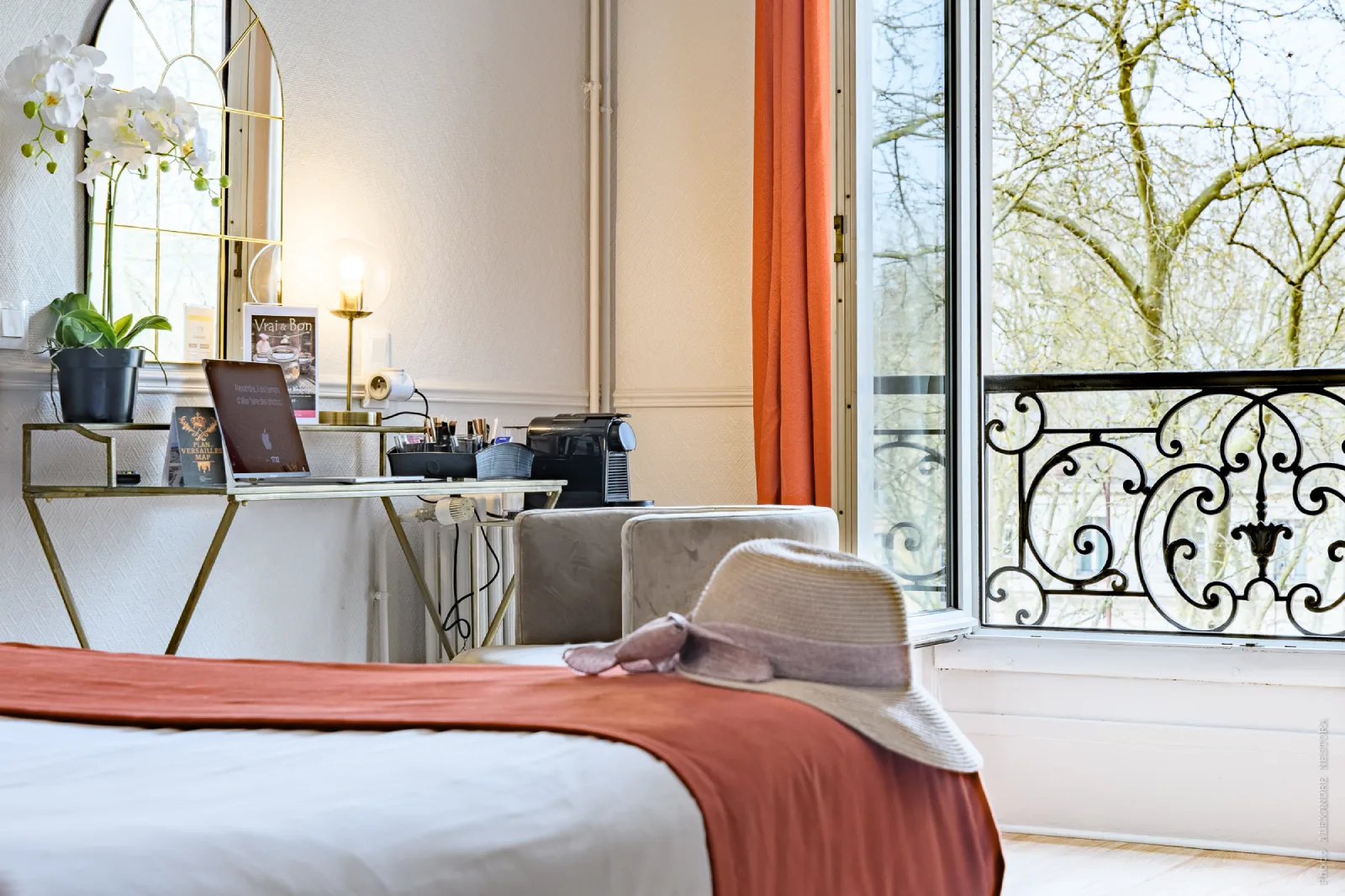 Atmosphère contemporaine mais très versaillaise, chic et sobre, ambiance feutrée et fonctionnelle…